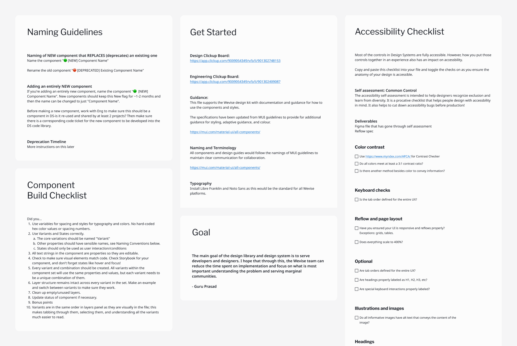 A guide for atoms, components, naming guidelines, page name guidelines, component bucket list, a11y.
