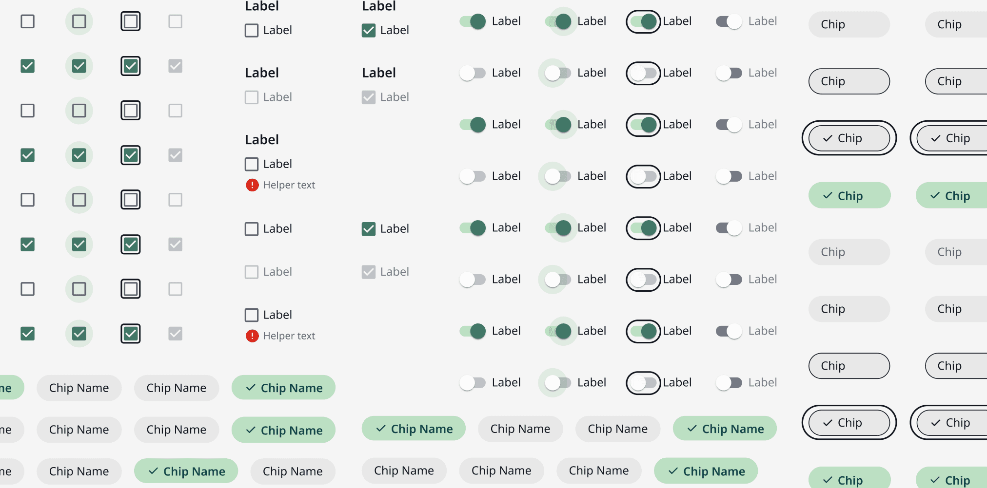Checkbox, switches, selection chip components