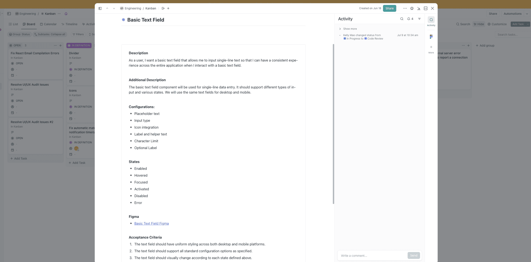 Worked with the PM and CTO to write stories about component specifications. Created a backlog of work for developers to be productive and keep them informed of all component specifications.