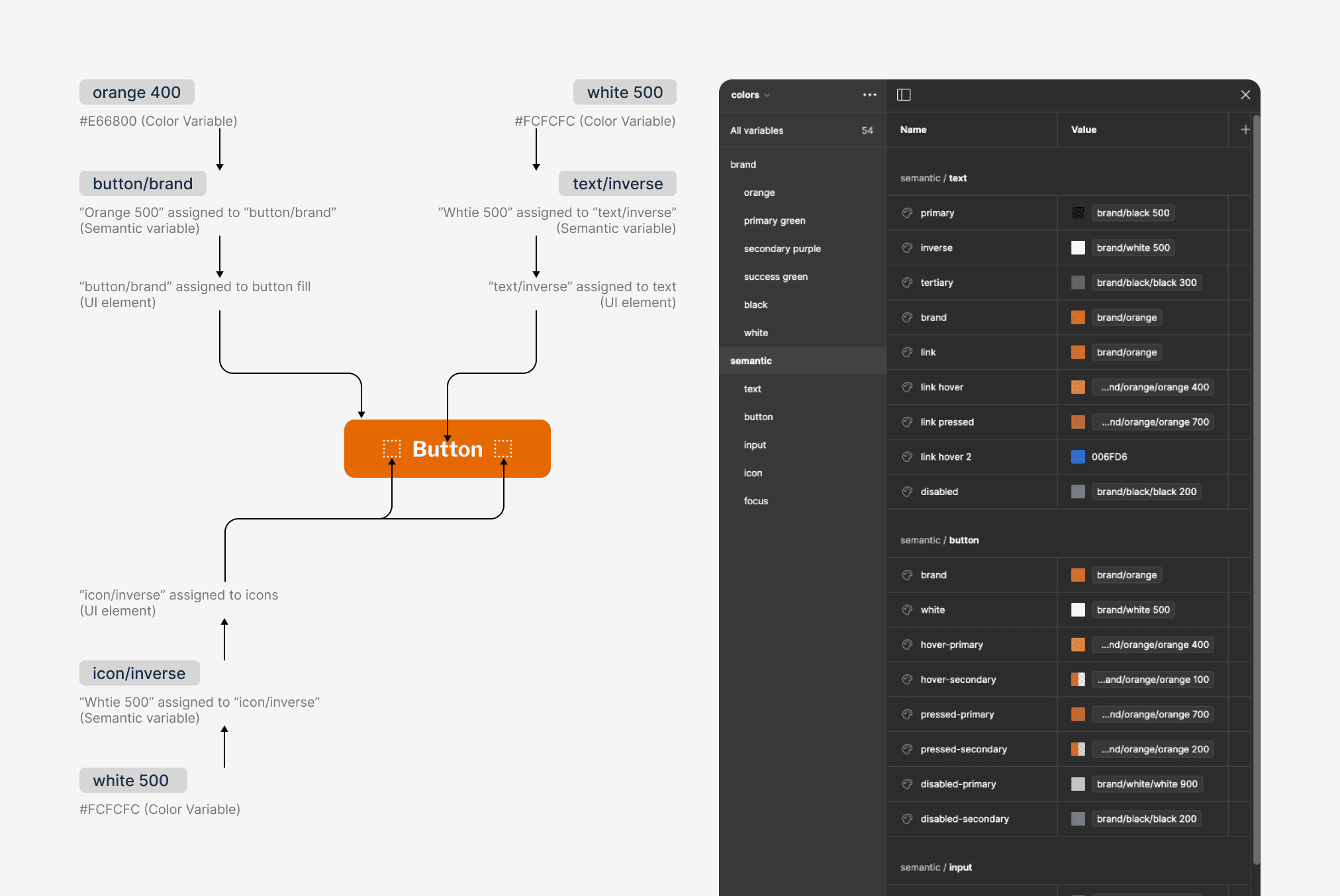 I created the naming convention and overall architecture. A screenshot of colour architecture and naming approach.
